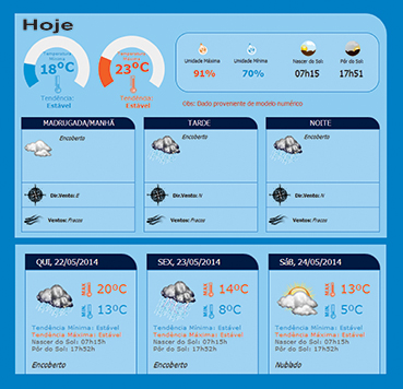 Em Santo Ângelo a nebulosidade já está presente desde a madrugada de hoje, mas na tarde, a chuva se intensifica e prossegue até a quinta-feira. O Sol volta aparecer timidamente na sexta-feira e sábado, mas ainda existe a possibilidade de chuva no final de semana, que deve ser gelado e apresentar um acumulado de até 14 mm no domingo.