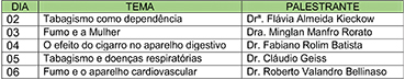 O Encontro Antitabagismo é realizado em cinco noites, sempre às 19h30min com orientações de um médico especialista por noite.