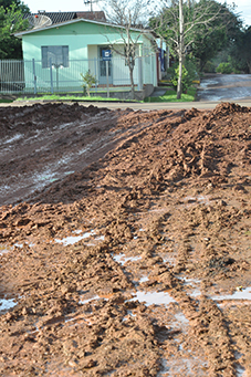 Nesta semana moradores do Residencial Ipanema se mobilizaram para reclamar da terra colocada para conter a água da chuva na esquina da Av. Rio Grande do Sul com a Travessa Francisco Copetti.