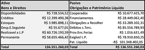 O Liquidante Valdir da Silva Lima apresentou o balancete detalhado da cooperativa, mas diante da complexidade do assunto a redação do Mensageiro preferiu aprofundar o assunto em uma próxima edição. No entanto, já adiantamos um dos resumos apresentados durante a assembleia.