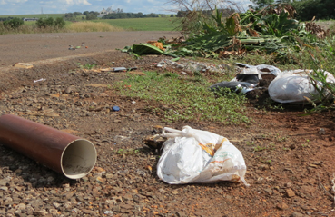 Lixo depositado de modo irregular as margens da Perimetral Onésimo Ribeiro Nardes. Restos de móveis, latas, papeis, roupas velhas e inclusive animais mortos foram observados neste retrato que já se torna cotidiano. A foto foi registrada na tarde de segunda feira, dia 21, e ainda é possível observar as marcas do veículo que foi responsável pelo indesejado despejo, pois a soja foi recentemente colhida e o ato praticado há poucos dias.